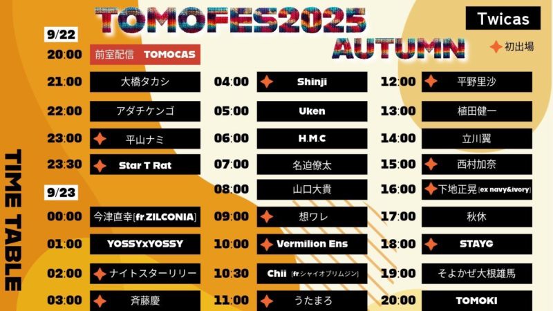 24時間リレー配信(観覧無料) 「TOMOFES2025 Autumn」